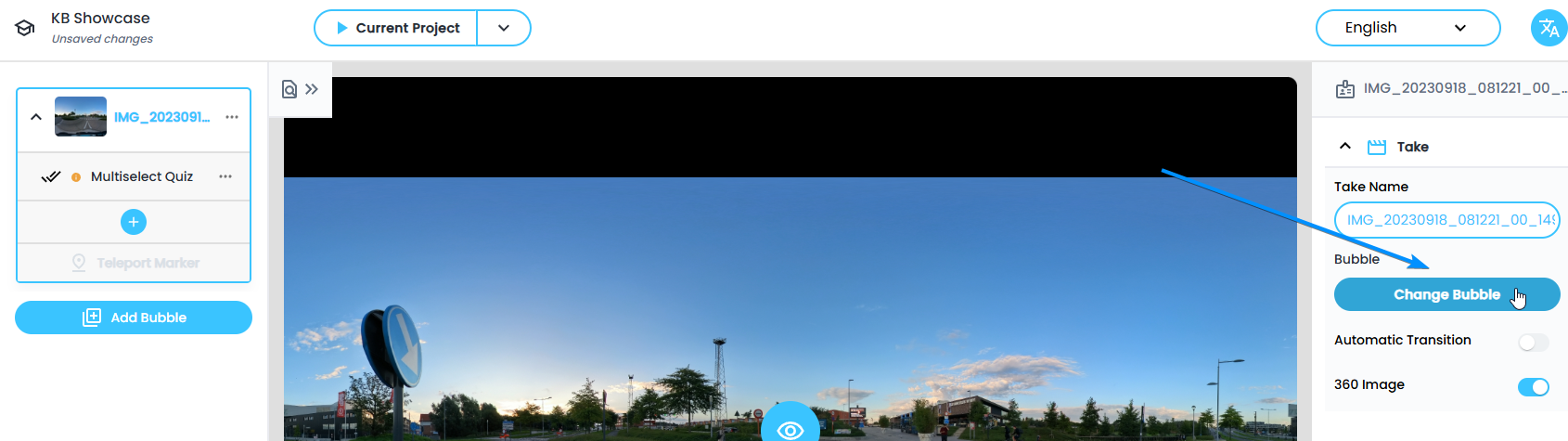 - To change the base picture of an existing bubble, click on the "change bubble" button on the right sidebar.