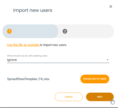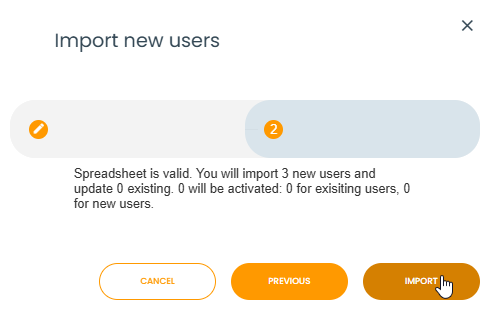 When the Excel file got validated, you get a summary of how many users the system will import.
