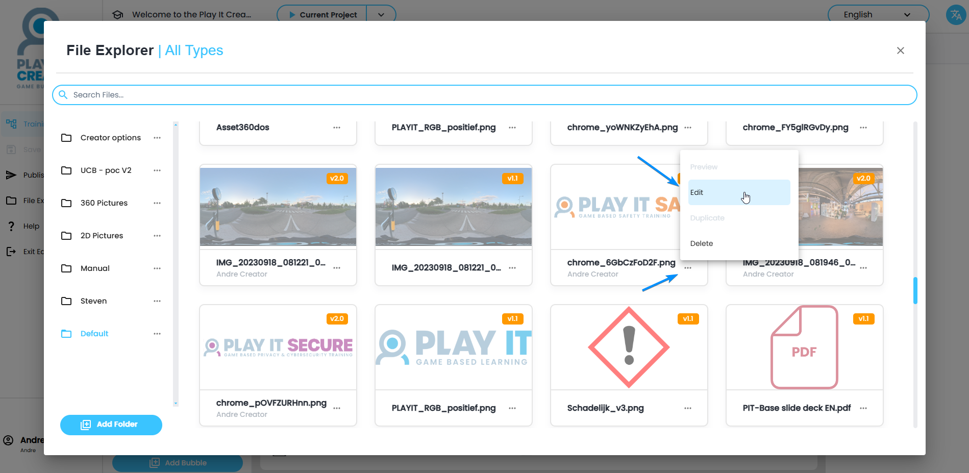 - For every asset in the 'File Explorer' you can add localized assets. These assets will change depending on the selected language of the player