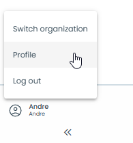 When you click on your name and organization in the bottom left corner, you will be presented with a menu.
