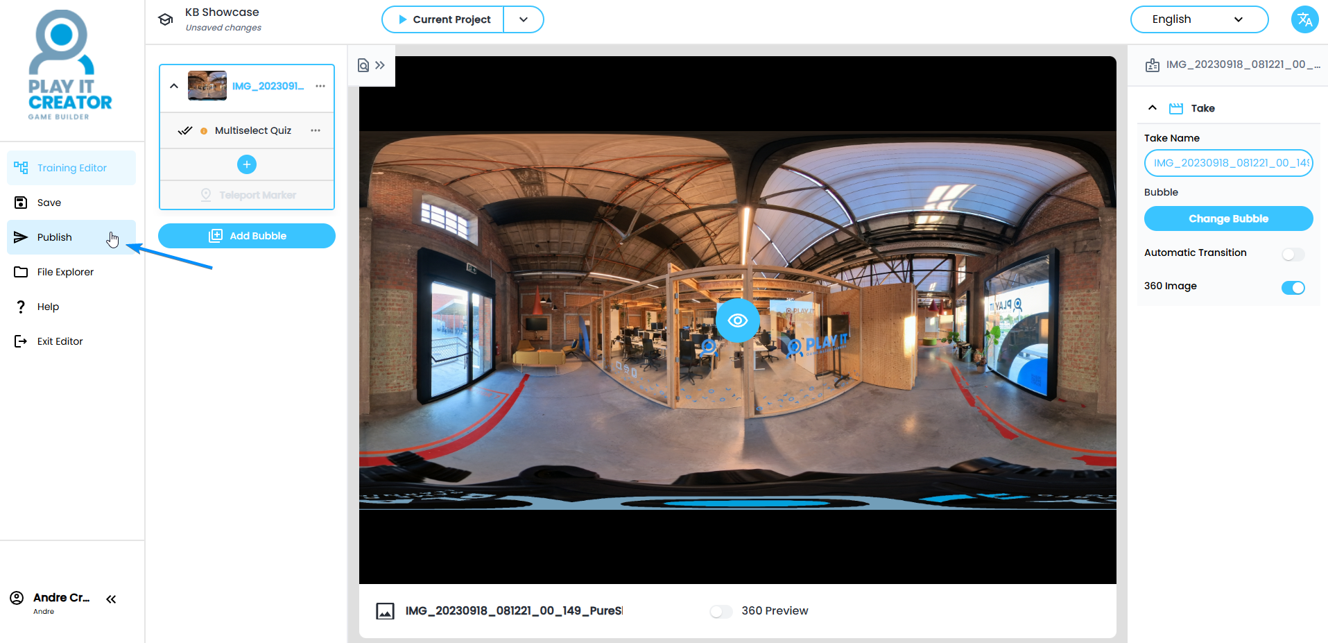 - Click on the 'Publish' button in the menu on the left