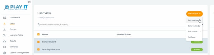 Als je alle gebruikers hebt geselecteerd die je wilt verwijderen, kun je op de knop 'Actie selecteren' klikken en 'Gebruikers verwijderen' kiezen.