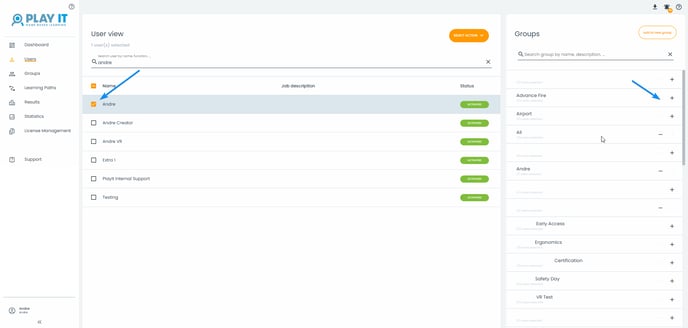 On this page in the center you have the 'User view' and on the right you have 'Groups'